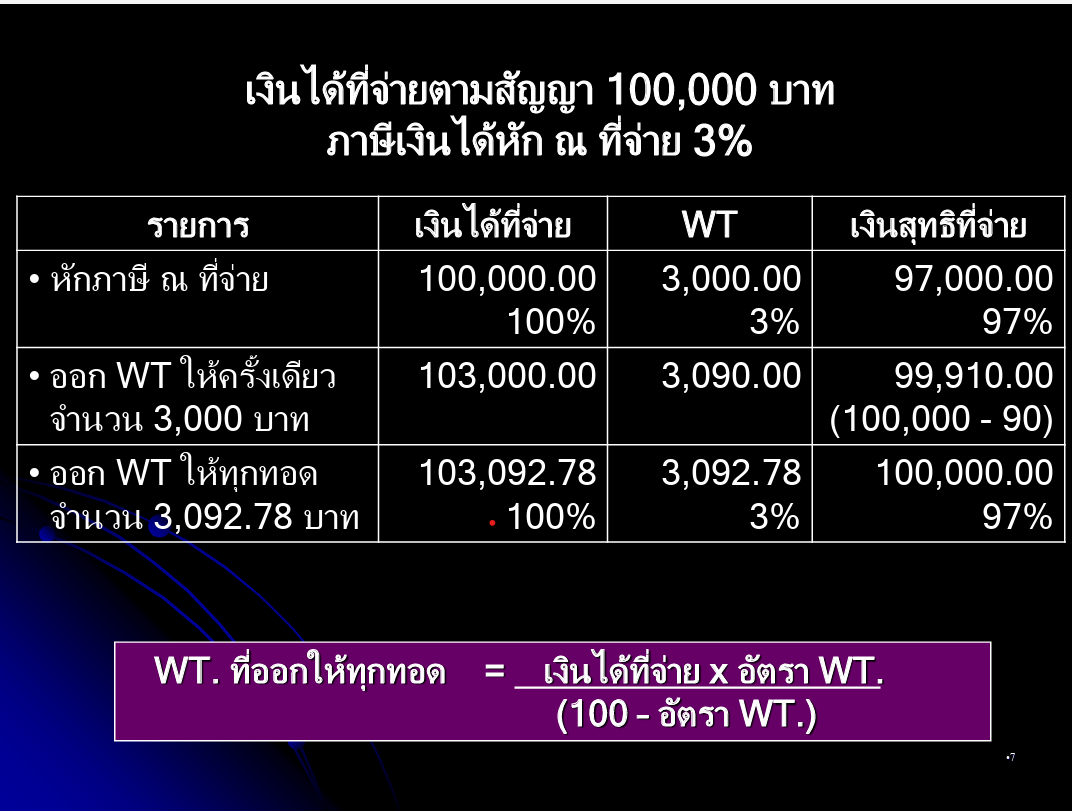 ตัวอย่างการคำนวณภาษีเงินได้หัก ณ ที่จ่ายในแต่ละกรณีและยอดเงินที่ใช้กรอกในแบบ 50ทวิ www.rd.go.th/publish/seminar/180515_WHT_doc.pdf