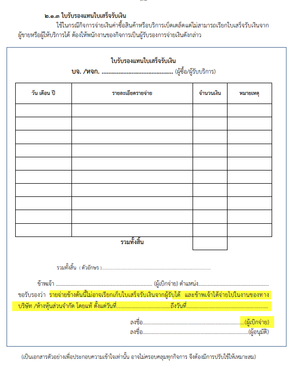 อย่างไรก็ตาม เพื่อเป็นการลดข้อขัดแย้งกับเจ้าหน้าที่สรรพากรในอนาคต และชี้แจงพิสูจน์ให้เจ้าหน้าที่ทราบได้อย่างชัดแจ้ง ขอแนะนำให้บริษัทฯ จัดทำเอกสารแนบเพิ่มเติมดังนี้ 1. เอกสารรายงานการประชุม หรือ Memo ประกอบการเดินทาง ระบุว่า การจ่ายค่าตั๋วเครื่องบิน ค่าที่พัก นั้นเป็นไปเพื่องานใด วัตถุประสงค์ใด ใครเป็นผู้เข้าพัก พักในวันใด และผู้มีอำนาจอนุมัติให้บริษัทรับผิดชอบค่าใช้จ่ายดังกล่าวเป็นต้น 2. ใบแทนใบเสร็จรับเงิน โดยให้พนักงาน ลงนามรับรอง ว่า โรงแรมไม่สามารถออกใบเสร็จชื่อบริษัทได้ แต่พนักงานได้มีการจ่ายไปจริง (ใบเสร็จจึงเป็นชื่อของพนักงาน) โดยสามารถออกแบบแบบฟอร์มให้เทียบเคียงกับคู่มือการจัดทำเอกสารประกอบการลงบัญชีที่สามารถเป็นรายจ่ายทางภาษีได้ที่จัดทำโดย สำนักมาตรฐานการสอบบัญชีภาษีอากร กรมสรรพากร เดือน มีนาคม 2559 คลิ๊กที่นี่เพื่อดาวน์โหลดฉบับเต็ม