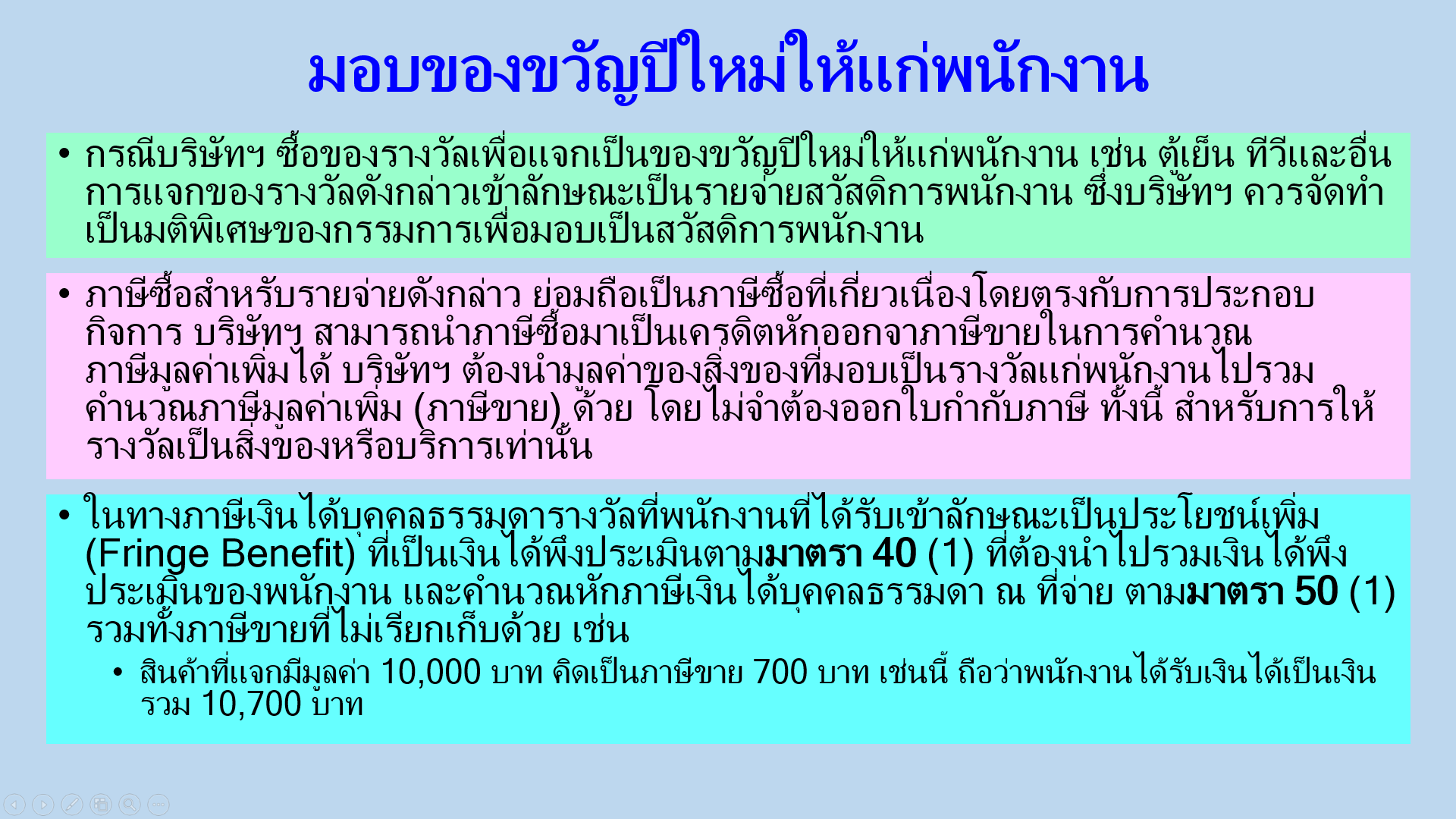 เรื่อง | 1) ภาษีซื้อกับของรางวัลแจกปีใหม่พนักงาน |