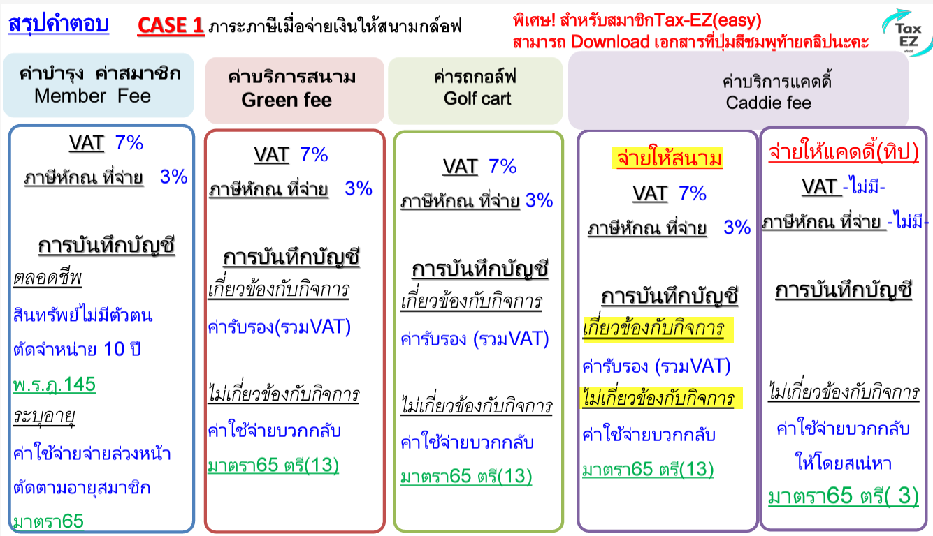 คำตอบ | ตอบ ค่าใช้จ่ายแคดดี้ จะสามารถลงเป็นค่าใช้จ่ายทางภาษีได้หรือไม่นั้น ขึ้นอยู่กับข้อเท็จจริงค่ะ เช่น