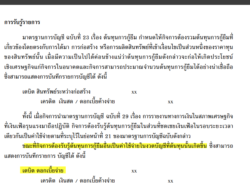 | คำตอบ | มาตรฐานการบัญชีฉบับที่ 23 เรื่อง ต้นทุนการกู้ยืม คู่มืออธิบายมาตรฐานการบัญชีฉบับที่ 23 เรื่อง ต้นทุนการกู้ยืม เพื่อให้สอดคล้องกับมาตรฐานการรายงานทางการเงินสำหรับกิจการที่ไม่มีส่วนได้เสียสาธารณะ (TFRS for NPAEs) และข้อกฎหมายเกี่ยวกับนิติกรรมทางอิเล็กทรอนิกส์ ขอสรุปคำแนะนำดังนี้ 1) การรับรู้ค่าใช้จ่ายค่าธรรมเนียม (Entry & Exit Fee 3%)