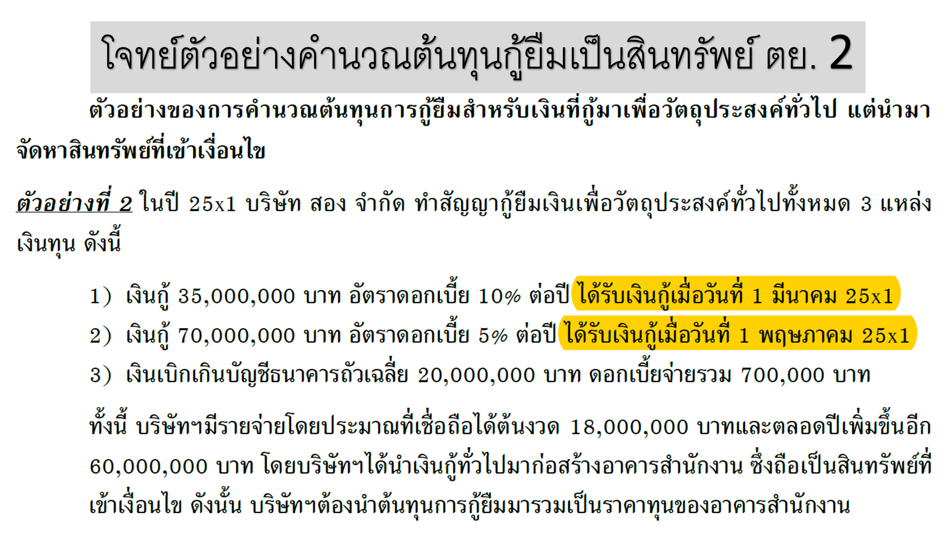 | เรื่อง | การคำนวณอัตราดอกเบี้ยที่ตั้งเป็นทุนตาม TAS23 เรื่อง ต้นทุนการกู้ยืม |