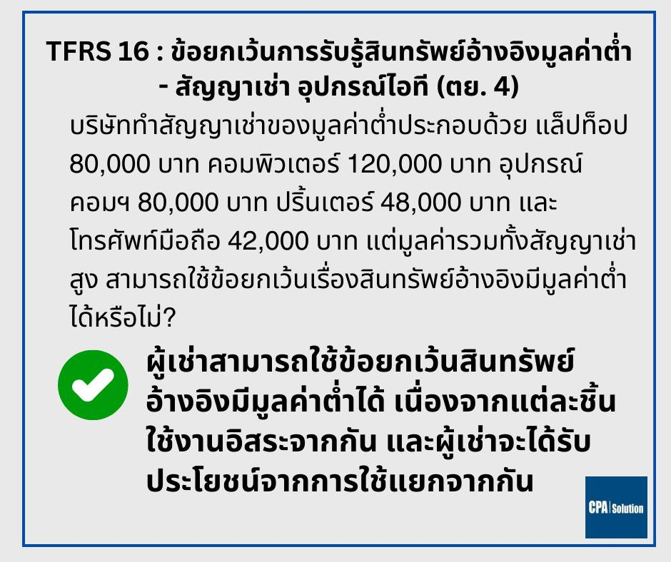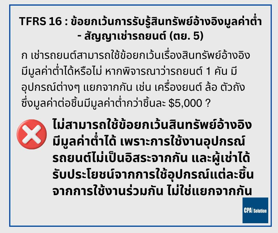 คำถาม | คู่มืออธิบาย TFRS 16 : สัญญาเช่า |