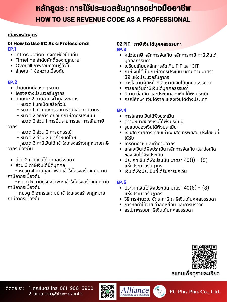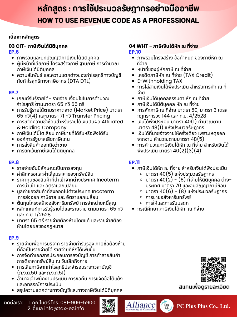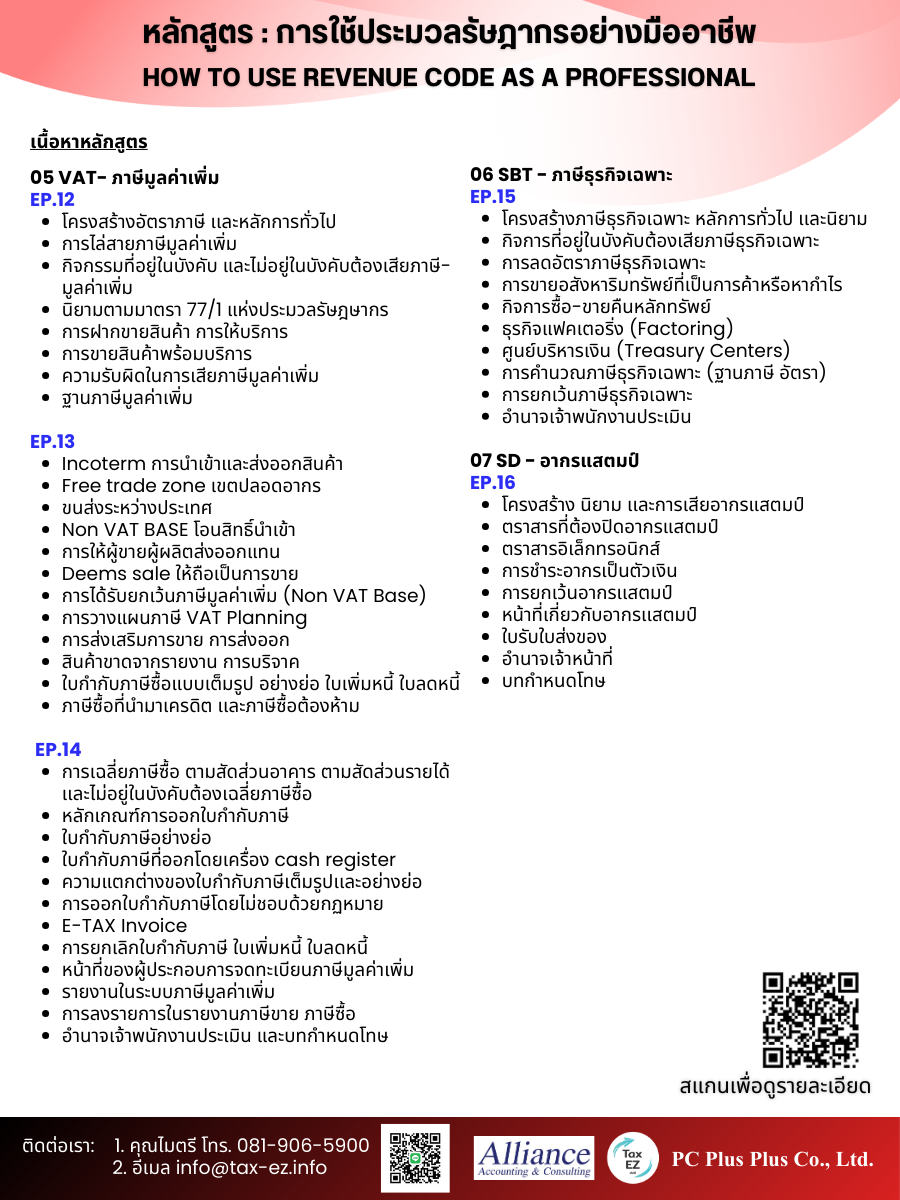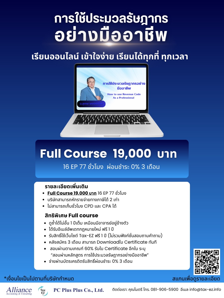 ✨✨ พิเศษ ✨✨ ของขวัญปีใหม่ สนใจสมัคร การใช้ประมวลรัษฎากรอย่างมืออาชีพ รับส่วนลดพิเศษ คลิ๊กที่นี่เพื่อสมัคร !เพียงกรอก รหัสส่วนลด NY รับสิทธิ์ซื้อคอร์สในราคาโปรโมชั่น 11,111 บาท และ ผ่อน 0% 10 เดือน ทันที!! |