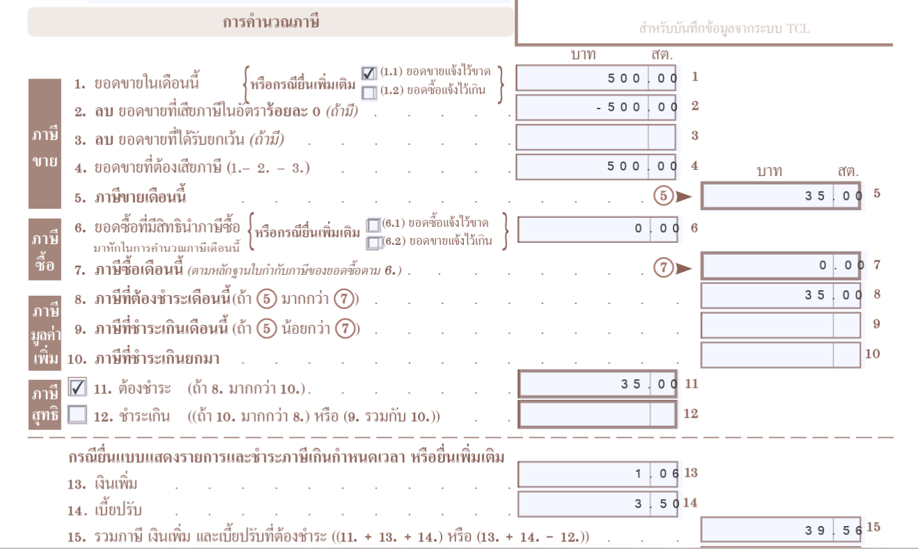 | คำถาม | รบกวนขอสอบถามเกี่ยวกับการกรอกแบบ ภพ.30 ยื่นเพิ่มเติม กรณียื่นภาษียื่นยอดขาย7%ไว้ต่ำไป และยื่นยอดขาย0%ไว้สูงไป โดยมีรายละเอียดดังนี้ค่ะ โดยขอยกตัวอย่างตัวเลขดังนี้ กรณีแบบนี้บริษัทจะต้องกรอกแบบ ภพ.30 เพื่อยื่นเพิ่มเติมอย่างไร และวิธีการคำนวณเงินเพิ่ม+เบี้ยปรับ ตามที่ยกตัวอย่างถูกต้องหรือไม่ โดยที่วิธีการกรอก และการคิดเงินเพิ่ม+เบี้ยปรับเป็นดังนี้ค่ะ |