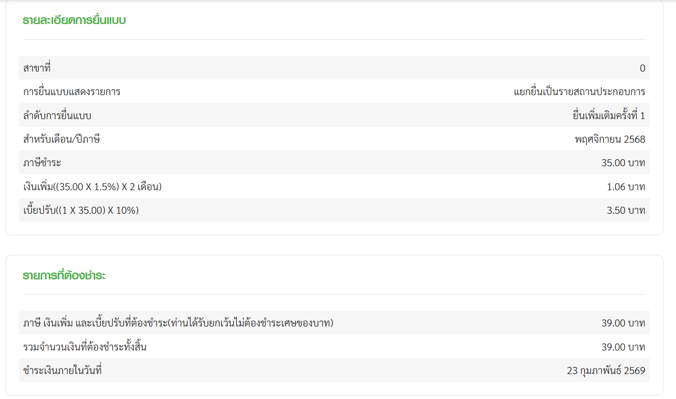 ตอบ 3 การคำนวณเงินเพิ่ม และเบี้ยปรับ เงินเพิ่ม ตามมาตรา 89/1 แห่งประมวลรัษฎากร กำหนดให้คำนวณ เงินเพิ่มอีกร้อยละ 1.5 ต่อเดือน หรือเศษของเดือนของเงินภาษีที่ต้องชำระ จากข้อเท็จจริงของสมาชิก ภาษีที่ต้องชำระ = 500 บาท จะต้องเสียเงินเพิ่ม 1.5% ต่อเดือน โดย นับจากวันที่ 15/12/2025 ตัวอย่างเช่น บริษัทยื่นเพิ่มเติมวันที่ 26/1/2569 เงินเพิ่ม = 35 x 1.5% x 2 เดือน = 1.06 บาท เบี้ยปรับ ตามมาตรา 89(3) แห่งประมวลรัษฎากร กำหนดให้บริษัทเสียเบี้ยปรับหนึ่งเท่าของเงินภาษีที่เสียคลาดเคลื่อนหรือที่นำส่งคลาดเคลื่อน จากข้อเท็จจริงของสมาชิก ภาษีที่ต้องชำระ = 35 บาท ดังนั้นหลักคือจะต้องเสียเบี้ยปรับอีก 35 บาท อย่างไรก็ตาม คำสั่งกรมสรรพากร ที่ ท.ป. 81/2542 ข้อ 2 ระบุว่า กรณีที่บริษัทได้ยื่นแบบเพิ่มเติมเอง โดยไม่ได้รับคำเตือนหรือคำเรียกตรวจสอบไต่สวนโดยตรงเป็นหนังสือ บริษัทจะได้ลดเบี้ยปรับจาก 1 เท่า เหลือ 2% หรือ 5% หรือ 10% หรือ 20% ขึ้นอยู่กับจำนวนวันที่พ้นกำหนดเวลาชำระภาษีมูลค่าเพิ่ม ตามอัตราและเงื่อนไขดังต่อไปนี้ (ค) ถ้าชำระภายหลัง 30 วัน แต่ไม่เกิน 60 วัน นับแต่วันพ้น กำหนดเวลาชำระภาษีมูลค่าเพิ่ม ให้เสียร้อยละ 10 ของเบี้ยปรับ (ง) ถ้าชำระภายหลัง 60 วัน นับแต่วันพ้นกำหนดเวลาชำระภาษี มูลค่าเพิ่ม ให้เสียร้อยละ 20 ของเบี้ยปรับ จะต้องเสียเบี้ยปรับ 3.50 บาท (35 x 10%) กรณียื่นเพิ่มเติมภายใน 60 วันนับจากวันที่ 15/12/2025 จากข้อเเท็จจริงของสมาชิก ภาษีที่ต้องชำระ = 35 บาท หลักคือจะต้องเสียเบี้ยปรับอีก 35 บาท แต่ได้สิทธิ์ลดเบี้ยปรับ ตัวอย่างเช่น บริษัทยื่นเพิ่มเติมไม่เกินวันที่ 23/2/2569 จะถือว่าชำระภายหลัง 30 วัน แต่ไม่เกิน 60 วัน นับแต่วันพ้น กำหนดเวลาชำระภาษีมูลค่าเพิ่ม(วันที่ 15/12/2025) ดังนั้นบริษัทจะต้องเสียเบี้ยปรับ ให้เสียร้อยละ 10 ของเบี้ยปรับ เบี้ยปรับ = 35 x 10%= 3.50 บาท