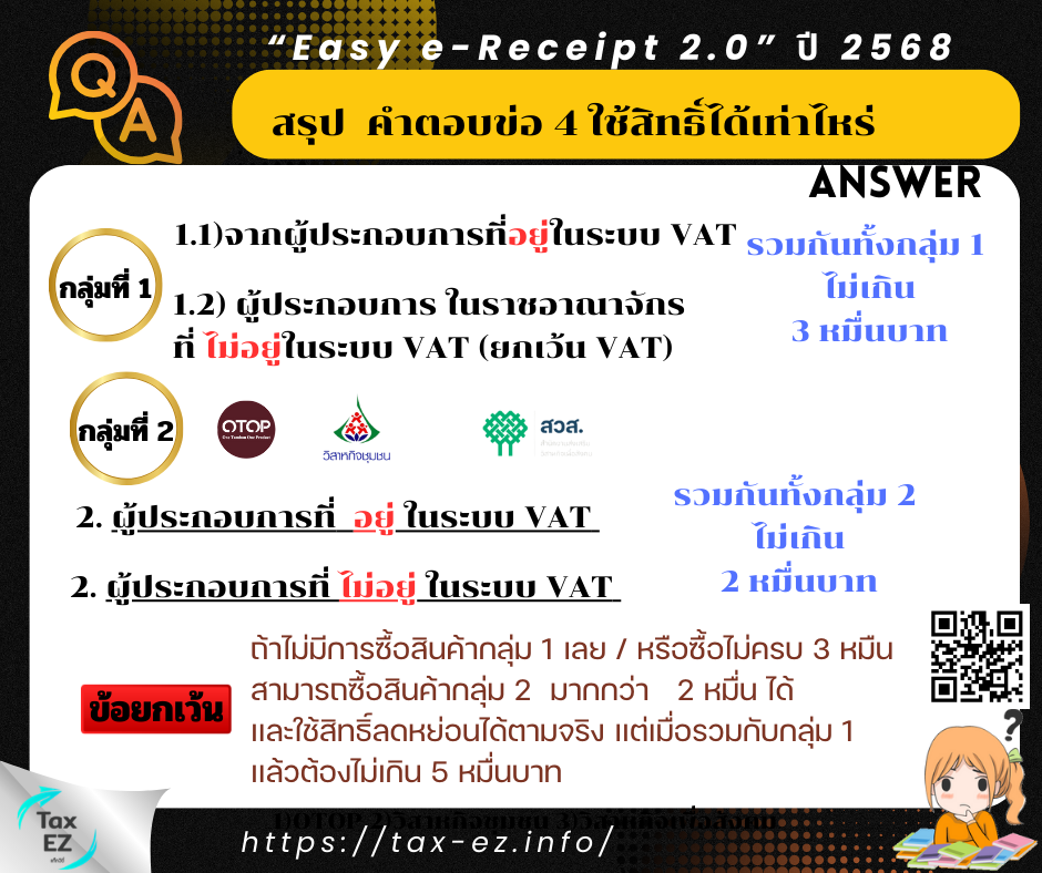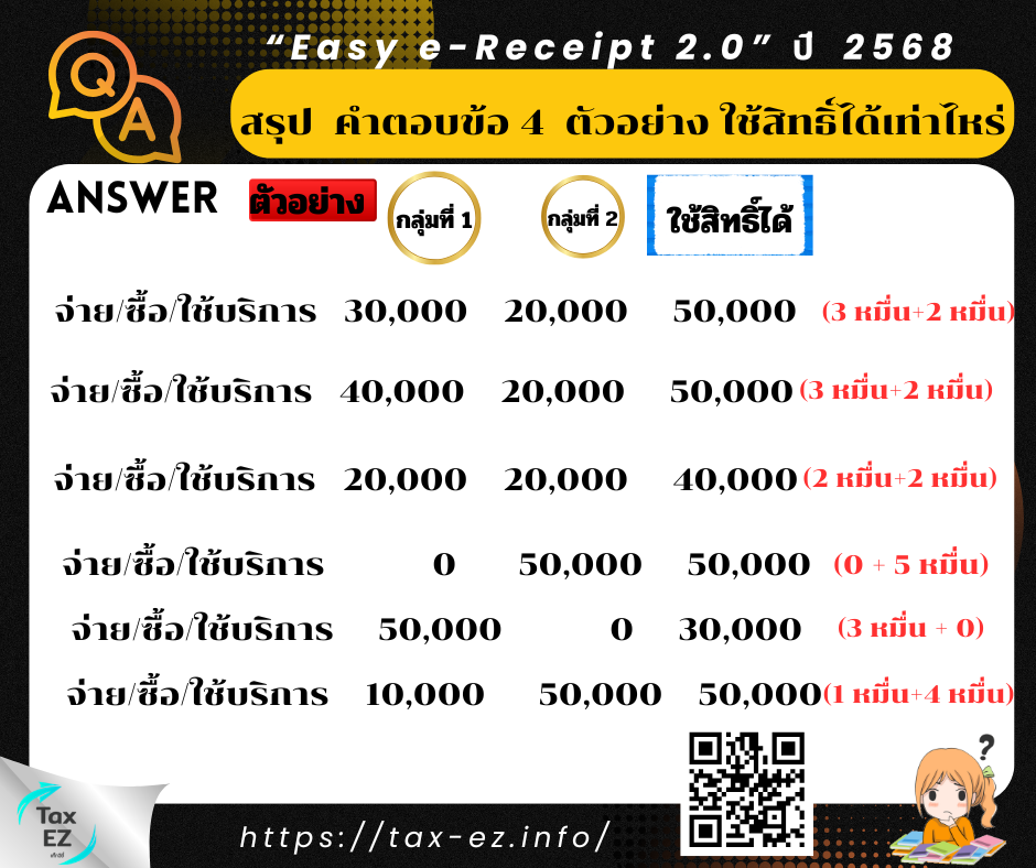 | คำถาม | ถาม-ตอบ : Case Study ถาม-ตอบ มาตรการ “Easy e-Receipt” ปี 2568 by Tax-EZ