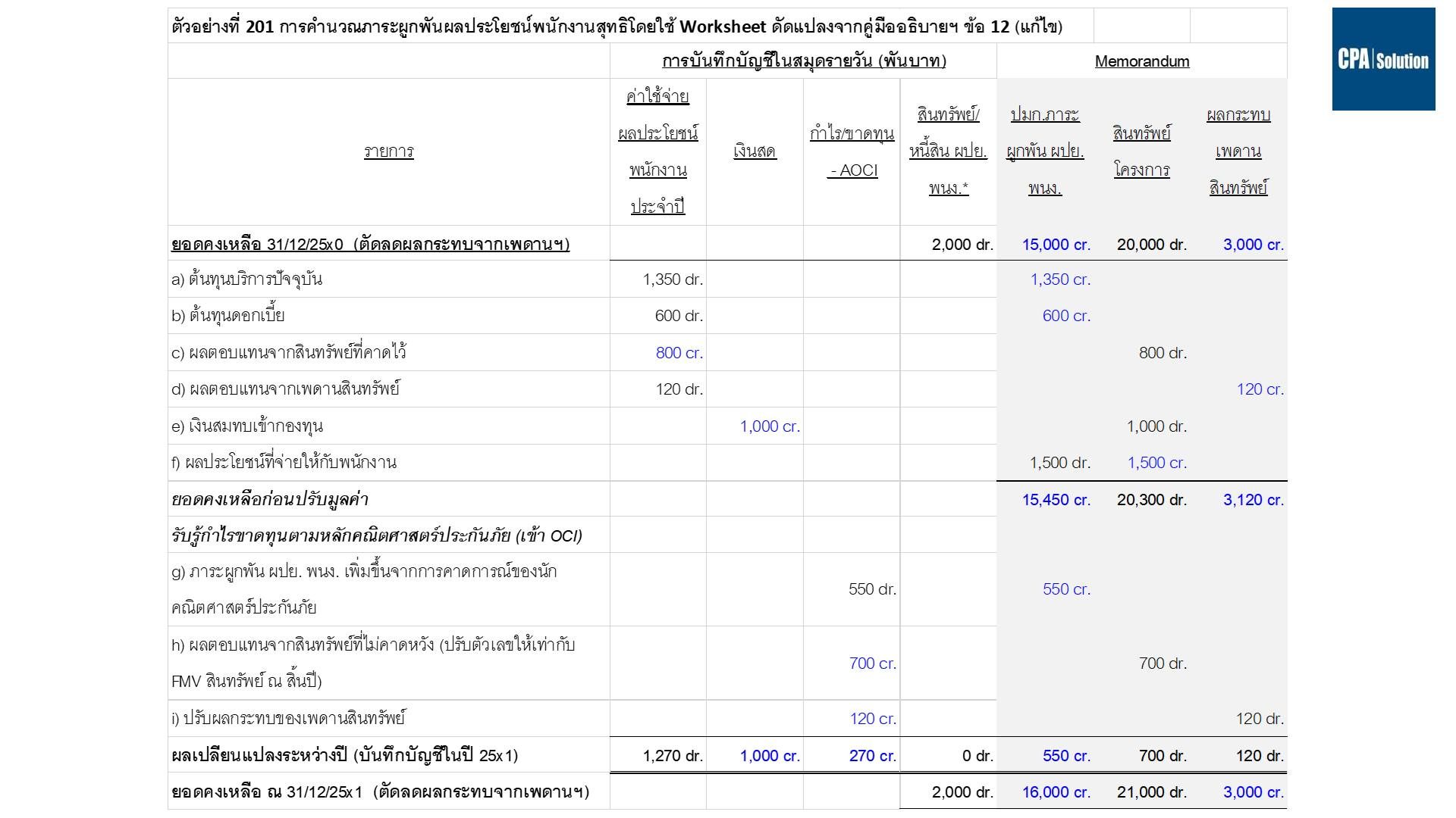 พี่น้อง AC1 ขอแก้การบันทึกบัญชีผลประโยชน์พนักงานที่อยู่ในเล่มเนื้อหาตัวอย่าง 201 ผมเข้าใจผิดมาโดยตลอดว่า ผลกระทบเพดานสินทรัพย์คือยอดคงเหลือ แต่หลังจากสอบถามสภาวิชาชีพฯ ท่านได้ให้ความกระจ่างว่า "ผลกระทบเพดานสินทรัพย์คือจำนวนที่ต้องเอาไปหักจากสินทรัพย์สุทธิของโครงการ" Worksheet การบันทึกบัญชีจะเป็นแบบที่แสดงในโพสต์นี้ วานพี่น้องลองทำความเข้าใจ เผื่อจะออกข้อสอบรอบนี้ สู้ๆ นะครับ มาทำให้เป็นเรื่องง่ายด้วยบริการของ Tax-EZ สนใจสมัครสมาชิกเพื่อรับสิทธิพิเศษ คลิกที่นี่ ติดตามข่าวสารของ Tax-EZ ได้ทาง Website : tax-ez.info , Facebook Page : Tax-EZ ติดตาม FB เพจที่ให้ความรู้ทางด้านบัญชีกับ FB CPA Solution ดร.สมศักดิ์ ประถมศรีเมฆ คลิ๊ก ขอขอบคุณข้อมูลจาก FB CPA Solution ดร.สมศักดิ์ ประถมศรีเมฆ ที่อนุญาตให้นำความรู้ดีๆ มาแบ่งปันใน Website Tax-EZ ค่ะ |