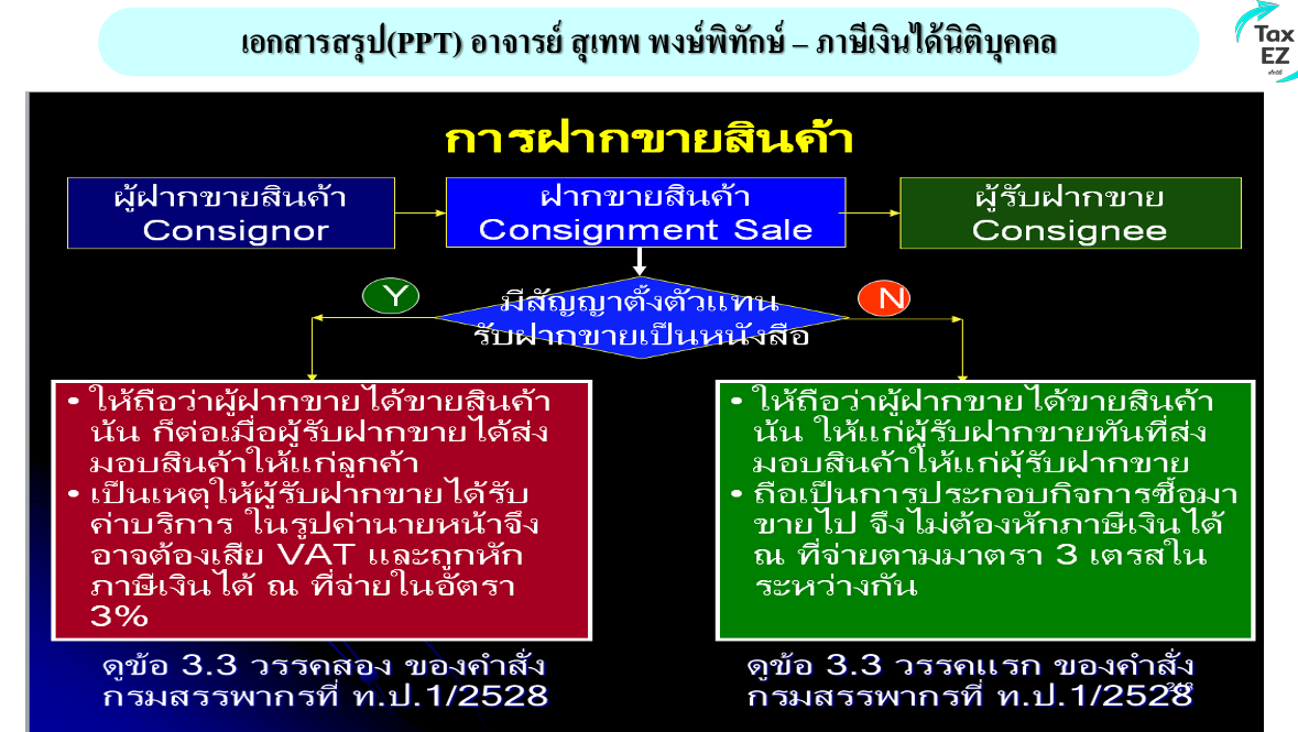 | เรื่อง | ภาระภาษีจากการนำสินค้าไปฝากขาย | |||||||||||